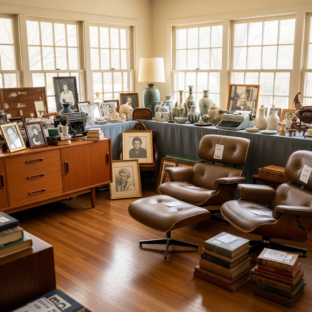 After extracting premium items, traditional estate sales work well for furniture, household goods, kitchenware, linens, books, and decorative items. Established companies bring built-in customer bases and handle all logistics—pricing, staging, advertising, staffing, and post-sale cleanup.